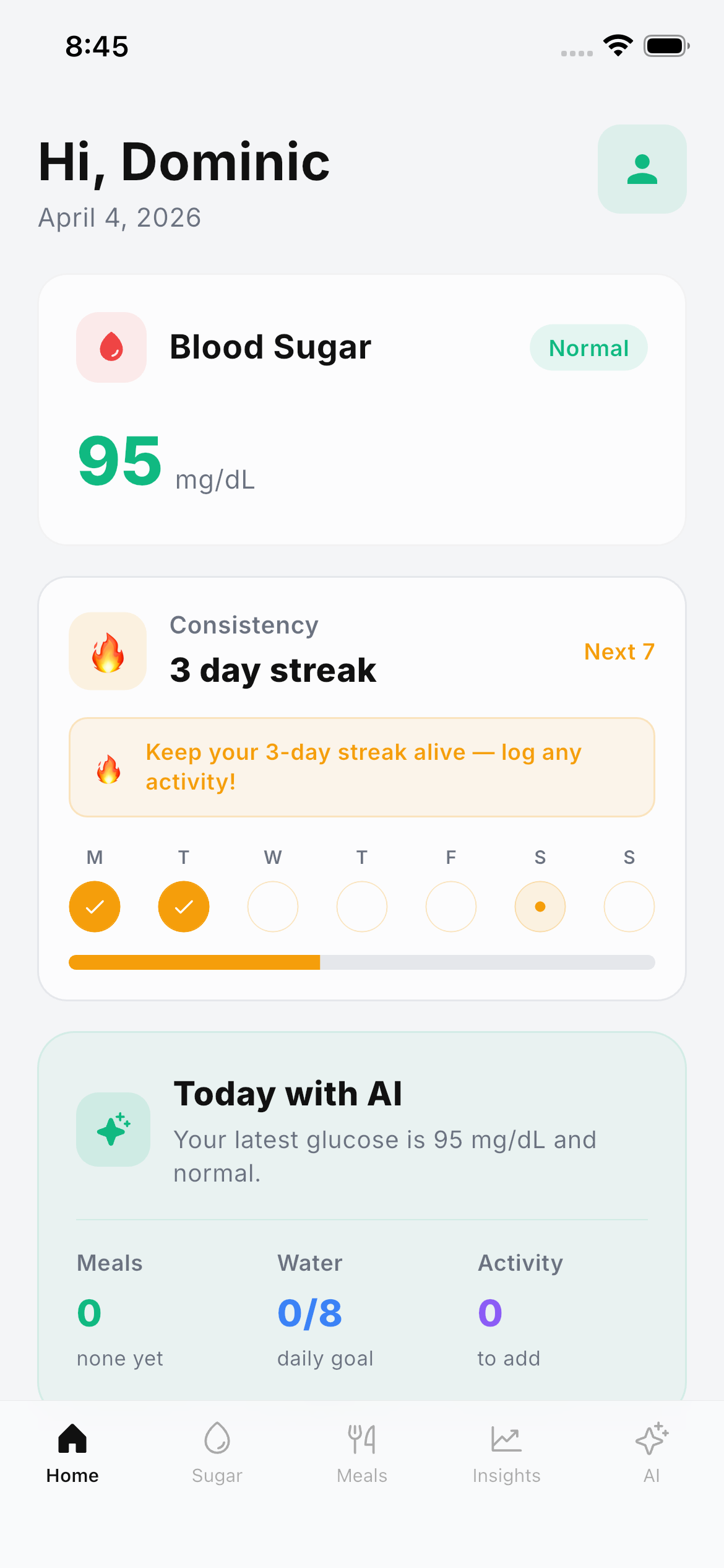 Your daily health companion for glucose monitoring and proactive next steps.